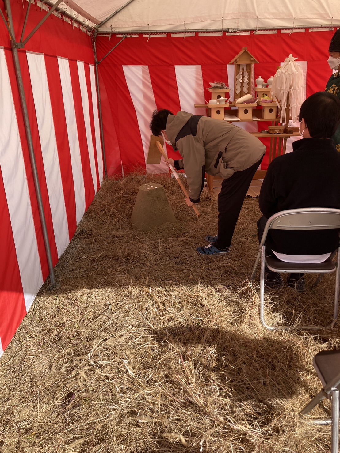 西大寺に建築予定のモデルハウスの地鎮祭を執り行いました。
