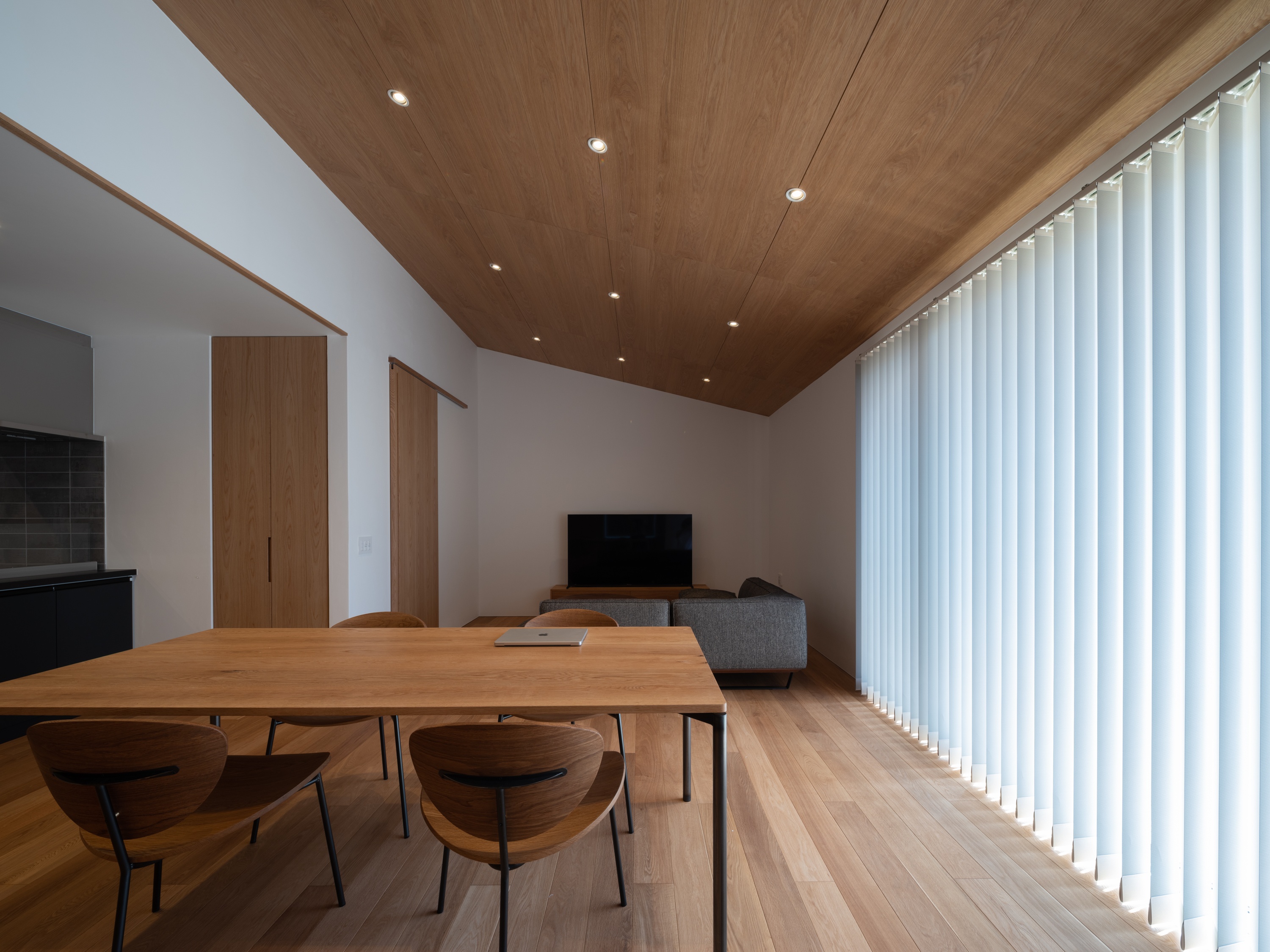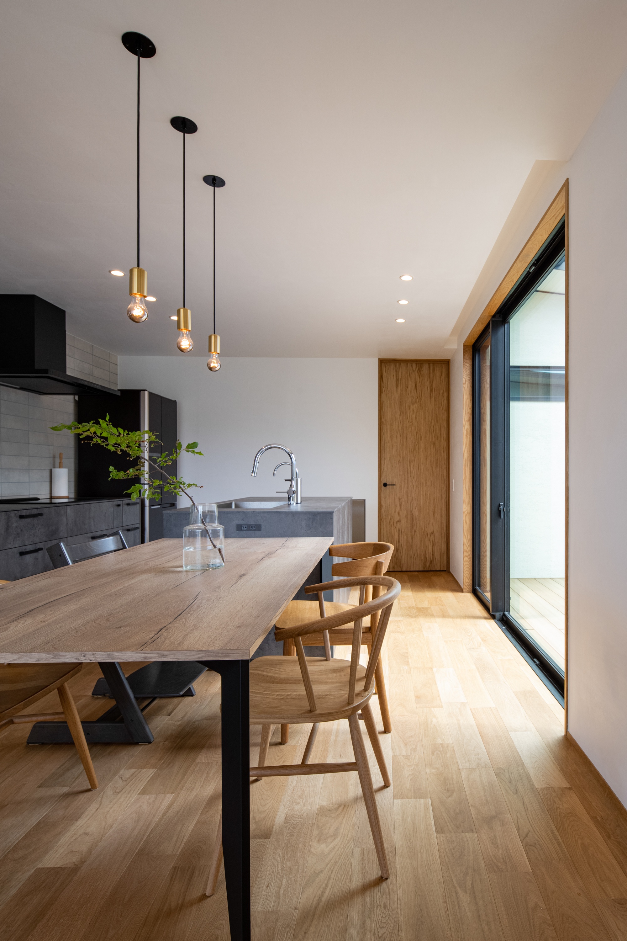 倉敷市のA様邸では内装の木材をナラ材で統一し、壁には漆喰塗を採用しました。