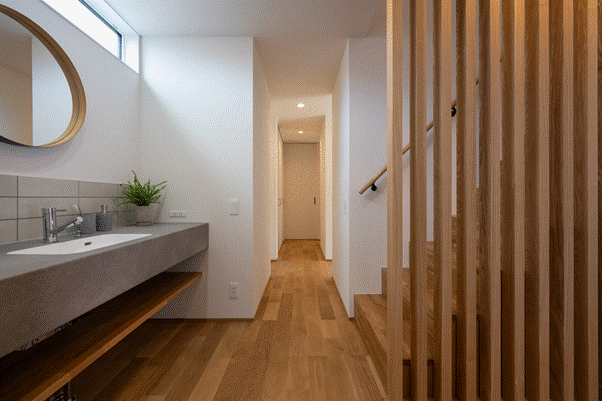 玄関から脱衣所や洗面スペースに直行できる動線は、子どもの帰宅後や仕事帰りの感染症対策にも効果的。