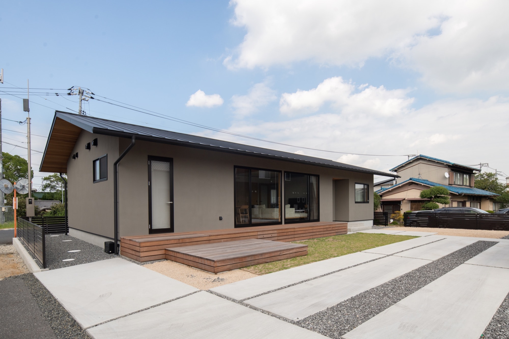 母屋の屋根には、スタンダードな家の形ともいえる切妻屋根を採用しました。