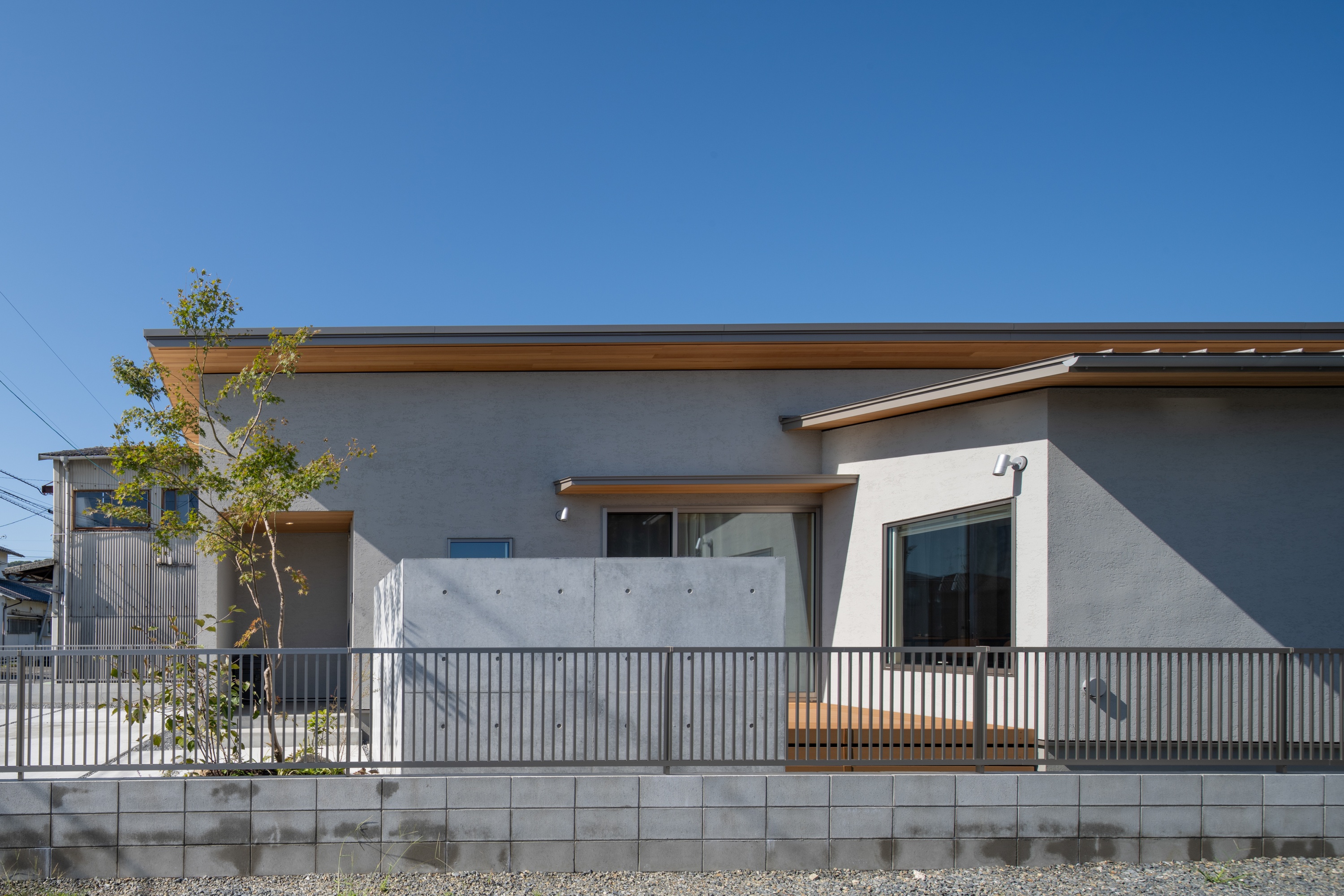 壁の前のシンボルツリーな紅葉を植えて、季節ごとにお家の印象が変わります。