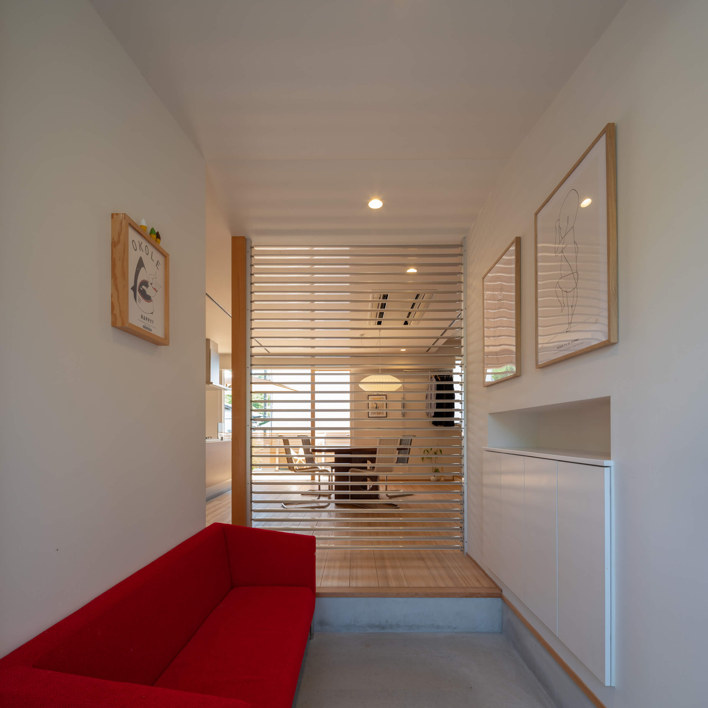 リビングと距離が近く、アクセスしやすい中2階に設けた寝室、