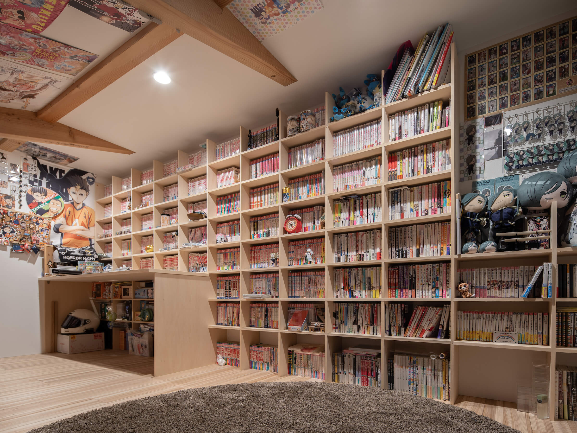 壁一面の造作本棚にマンガがびっしりと並んだ10帖もの趣味部屋など、